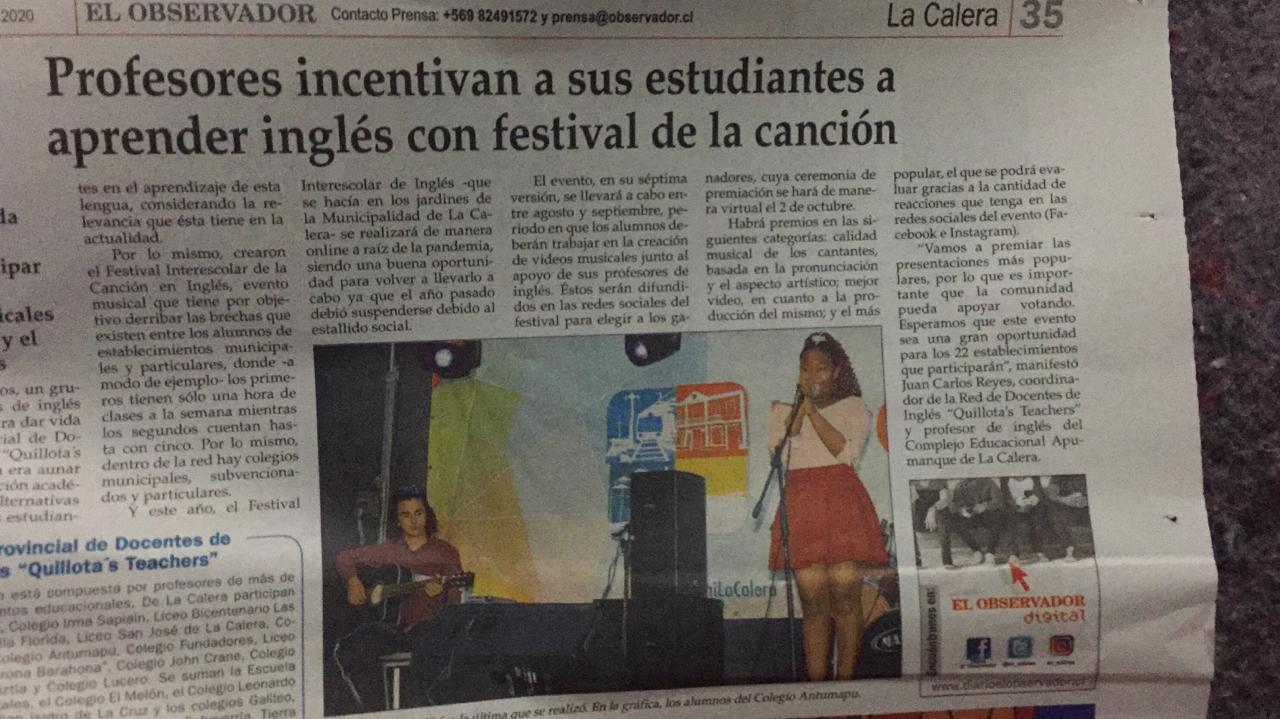 Profesores incentivan a sus estudiantes a aprender inglés con festival de la canción (El Observador)